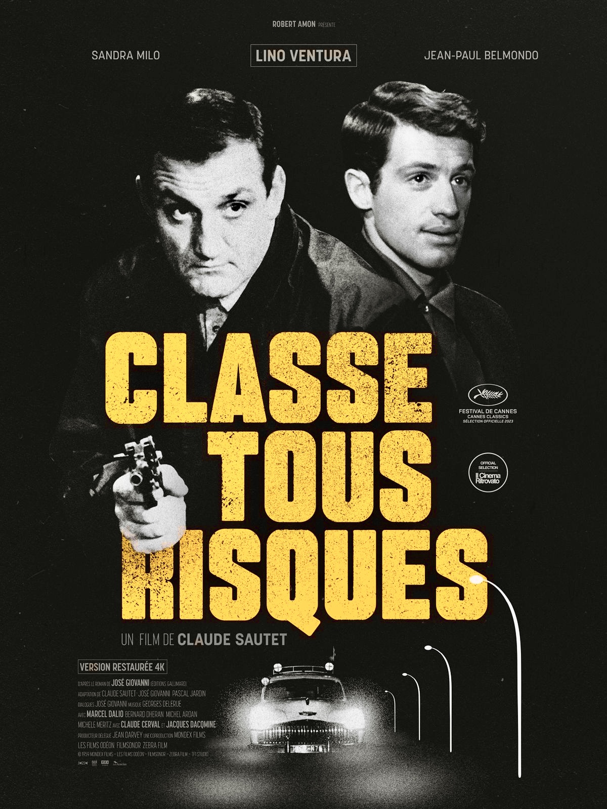 CLASSE TOUS RISQUES (1959). Un polar tendu et fraternel, Une cavale contre la montre : quand le temps manque, il ne reste que l’honneur — et l’amour des siens. Un gangster traqué tente de rentrer en France avec sa famille ; le drame accélère tout et l’oblige à choisir, vite, qui peut encore être digne de confiance. À (re)voir pour le temps de l’urgence (un film qui file, qui serre), et le basculement Sautet : le polar devient déjà une histoire de liens, de fidélité, de père et d’ami. Lino Ventura père traqué, Jean-Paul Belmondo allié imprévu — la cavale la plus humaine de Sautet.