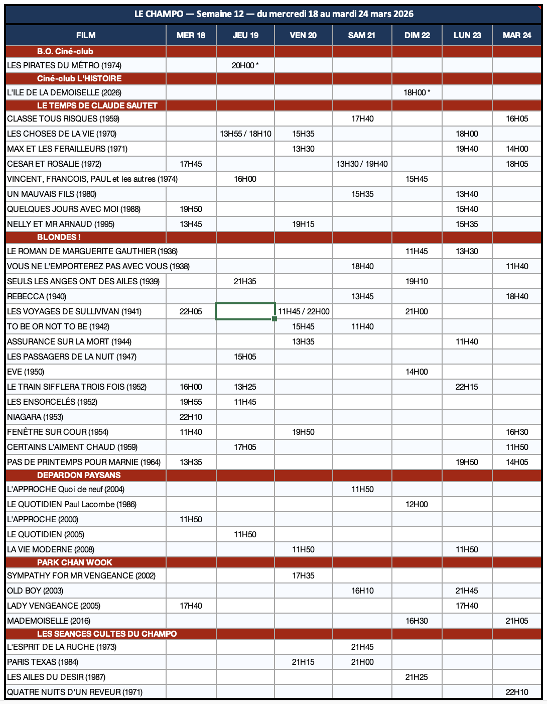 Les FESTIVALS, CYCLES, RETROSPECTIVES de PATRIMOINE, et AVANT-PREMIERES au CHAMPO :