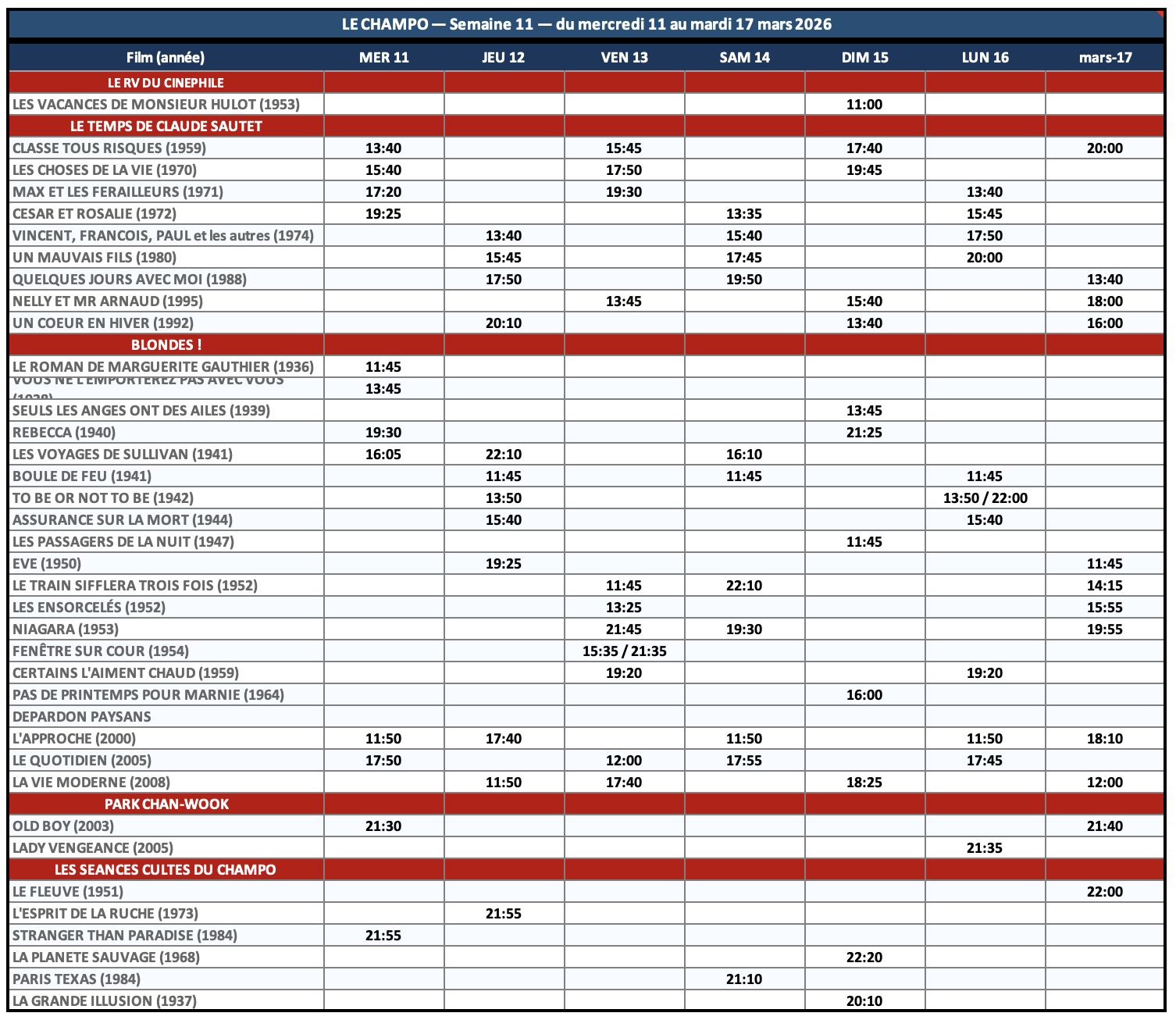À partir du 11 mars, au Champo