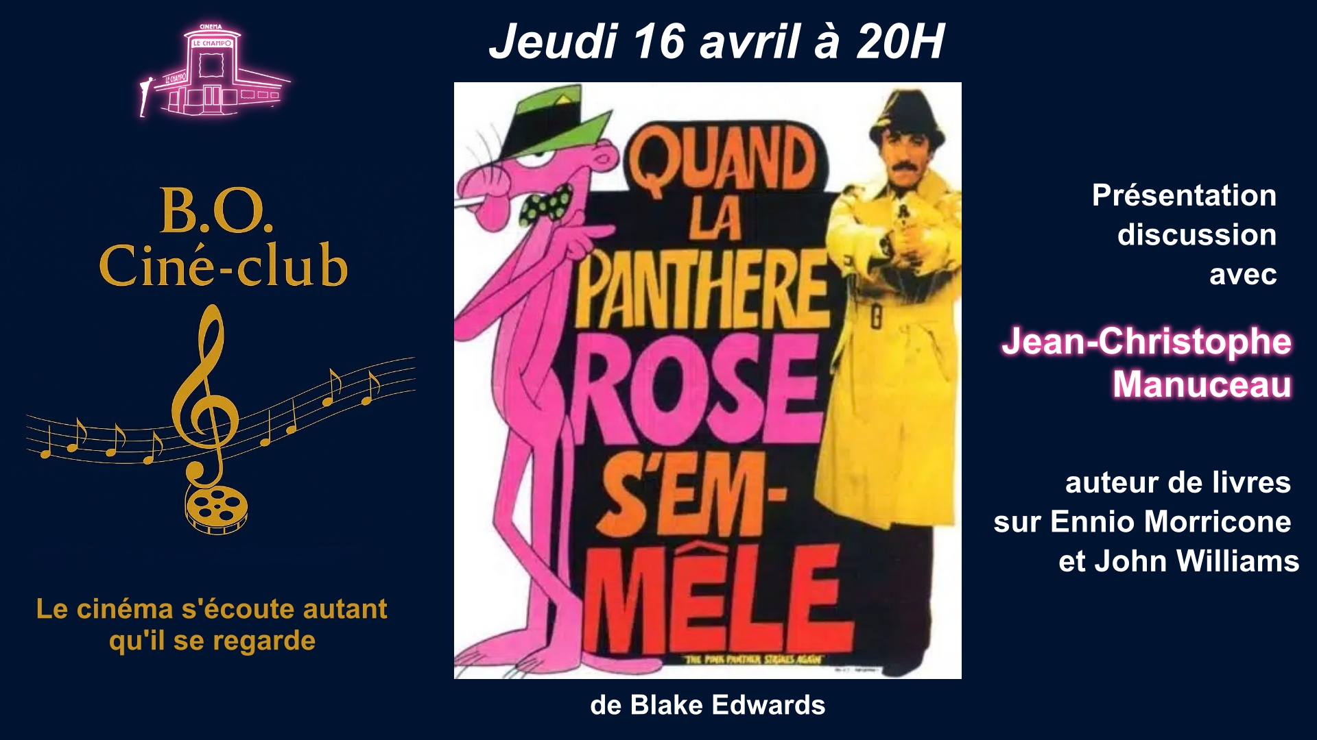 * QUAND LA PANTHÈRE ROSE S’EMMÊLE — Blake Edwards (1976) / musique Henry Mancini - Jeudi 9 avril à 20H00
